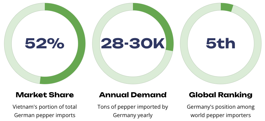 Germany occupies a position of strategic importance within Vietnam’s pepper export portfolio, functioning as both Europe’s largest pepper importer and the world’s fifth-largest consuming market. The German market demonstrates consistent annual demand ranging between 28,000 and 30,000 tons of pepper products, representing substantial commercial opportunity for qualified suppliers. Vietnam has established itself as Germany’s dominant pepper supplier, currently providing approximately 52% of total German import volume—a market leadership position built over years of consistent quality delivery and competitive pricing.