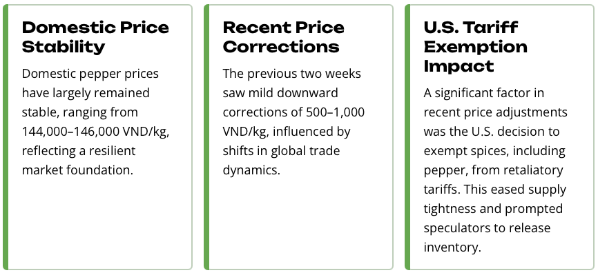 The recent exemption of spices, including pepper, from retaliatory tariffs by the U.S. government marks a pivotal development for the global spice trade. This policy shift has already led to a mild downward pressure on prices as the initial supply tightness eased and market speculators responded by releasing their inventory. However, experts widely regard this as a highly positive step, particularly for exporting nations.