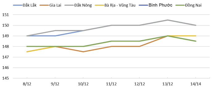 Pepper price developments in the Central Highlands and Southeast regions during the week from December 08 to December 14, 2025 *Source: VPSA