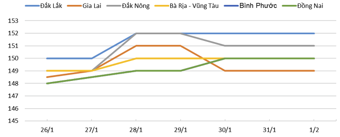 Price trends of pepper in the Central Highlands and Southeast regions during the week from 26-January to 01-February.