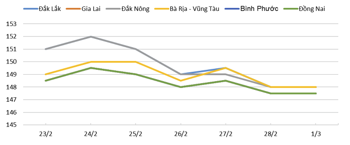 Price trends of pepper in the Central Highlands and Southeast regions during the week from 23-February to 01-March.