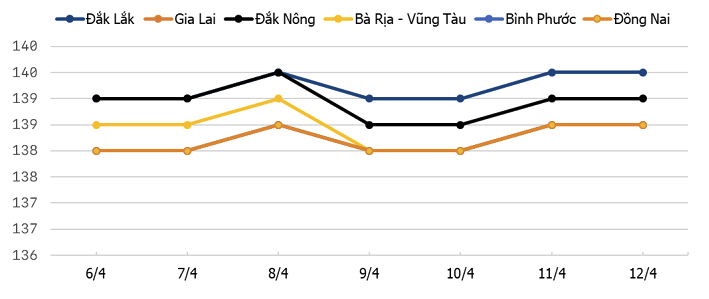 Price trends of pepper in the Central Highlands and Southeast regions during the week from 06-April to 12-April.